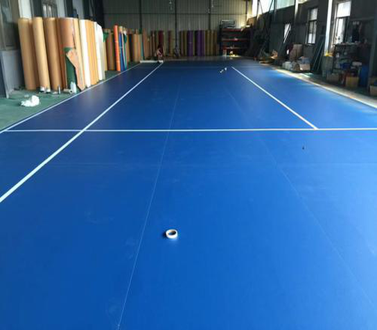 PVC運動地板:是采用聚氯乙烯材料專門為運動場地開發的一種運動地板,是以聚氯乙烯及其共聚樹脂為主要原料,加入填料、增塑劑、穩定劑、著色劑等輔料,在片狀連續基材上,經涂敷工藝、經壓延、擠出、擠壓工藝生產而成。一般是由多層結構疊壓而成,一般有耐磨層(含UV處理)、玻璃纖維層、彈性發泡層、基層等。PVC運動地板應用非常廣泛,是奧運會等各項國際性比賽都指定PVC彈性運動地板。